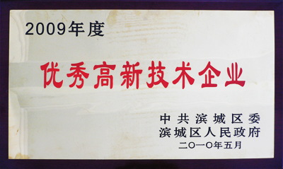 2010年5月31日下午,濱城區科學技術大會召開,會議對2009年度科技工作先進單位和先進個人進行了表彰,我公司總工徐家俊參加了表彰大會。會上,我公司被中共濱城區委、濱城區人民政府授予“優秀高新技術企業”稱號,這是我公司第二次獲此殊榮,區委副書記、區長焦本強為我公司頒獎。