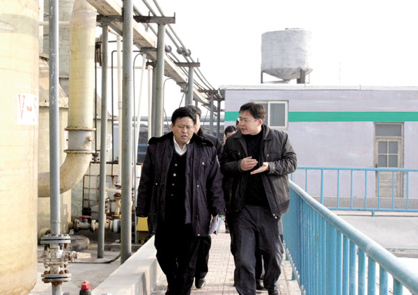 2009年12月22日上午,國(guó)家環(huán)保部華北督查中心領(lǐng)導(dǎo)會(huì)同省環(huán)保廳領(lǐng)導(dǎo),在市環(huán)保局局長(zhǎng)王惠軍、區(qū)環(huán)保局局長(zhǎng)孫文博等人的陪同下,蒞臨我公司視察污水處理再提高工程完成情況。公司董事長(zhǎng)黃延昌、生產(chǎn)總監(jiān)張玉瑞全程陪同并做詳細(xì)匯報(bào)。
